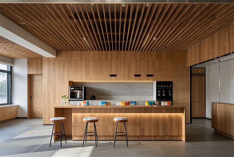 本方案采用現(xiàn)代簡約設(shè)計語言,整體空間以淺灰、白、原木三色為主基調(diào)。前臺區(qū)設(shè)置懸浮式接待臺與發(fā)光LOGO墻,搭配LED線性照明塑造企業(yè)形象。開放式辦公區(qū)采用模塊化工位布局,通過玻璃隔斷劃分功能區(qū)域,保證自然采光最大化的同時提升空間通透感。智能會議系統(tǒng)集成于各會議室,配備電動投影和書寫玻璃墻。經(jīng)理室采用深藍色烤漆木飾面提升商務(wù)質(zhì)感,休息區(qū)設(shè)置咖啡吧與卡座強化員工關(guān)懷。走廊運用導(dǎo)視燈帶串聯(lián)各區(qū)域,茶水間六角地磚增添趣味性。培訓室階梯式布局配合吸音墻面確保聲學效果,電話間磨砂玻璃立方體兼顧隱私與采光。VIP室智能霧化玻璃實現(xiàn)空間靈活轉(zhuǎn)換,整體設(shè)計注重功能分區(qū)與人文關(guān)懷的平衡。