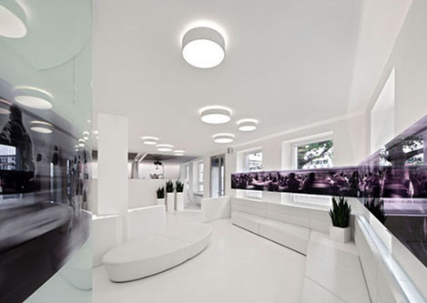 設計理念:牙科診所最終還是歸屬醫院范疇,給病人治病的。只是牙科診所可以在裝修上比醫院有更多的想法和創意的設計元素在里面。白色的地磚灰色的座椅使空間設計更嚴謹,傳遞出一種信任感并營造出臨床氛圍。