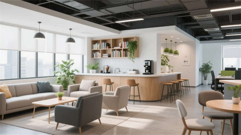 本辦公樓設計以簡約現代風格為核心,打造一個統一而流暢的空間體驗。整體強調功能性、舒適性和美學平衡,每個功能區均采用中性色調、干凈線條和自然元素,營造出寧靜和諧的環境。大堂入口以開放通透的布局迎接用戶,結合玻璃幕墻和木質細節,傳遞專業而溫馨的第一印象。開放式辦公區通過模塊化家具和充足采光,促進團隊協作與效率。會議室設計注重靈活性,透明隔斷和集成設備支持高效交流。員工休息區和餐廳咖啡吧作為社交中心,提供舒適休閑空間,增強員工福祉。經理辦公室平衡隱私與開放性,簡約家具營造專注氛圍。走廊和衛生間延續統一美學,注重清潔與引導性,確??臻g銜接自然。