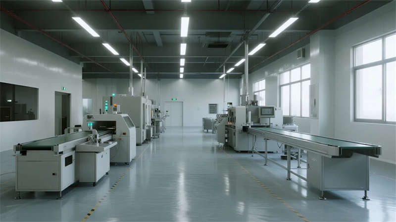 空間內(nèi)核強(qiáng)調(diào)人性化體驗:挑高中庭以懸浮樓梯創(chuàng)造輕盈動線,屋頂花園成為員工觸摸自然的窗口;無柱車間與智能實驗室展現(xiàn)工業(yè)精密感,而木格柵連廊與綠植墻則注入人文溫度。夜幕降臨時,建筑化為光影容器,冷白光帶勾勒結(jié)構(gòu)輪廓,暖黃窗格透出工作場景的活力。