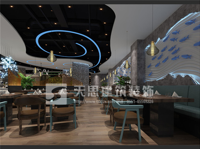 設計中的許多元素都是取材于海洋文化,不但讓餐廳充滿了神秘的歷史厚重,還讓豐富多彩的海洋生物成為裝點餐廳的水族館,四處都可以看見各種海洋精靈悠游的風景。