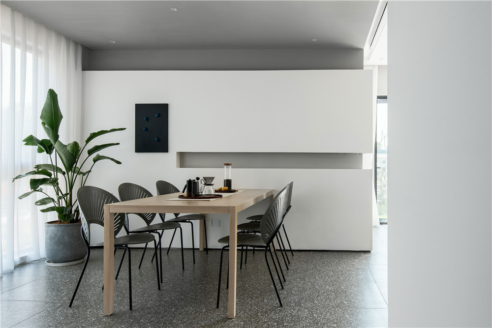 特色墻面 耐臟也很神秘,當然不能是全部黑色。雖然黑色磕碰掉以后也會很難打理修補,但是如果某一面墻體用上黑色的油漆,會對空間感有拉伸的效果,這套公寓黑色墻面也與地面非常搭配。