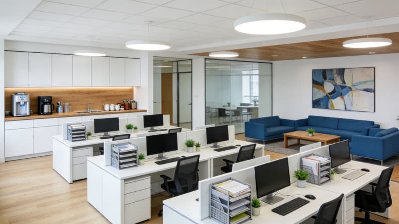 本設計圍繞宣城8000平廠房展開,以現代簡約風格為核心,將實用性、功能性與美學完美融合,打造一個適應現代化工業生產與辦公需求的空間。整體空間注重線條的簡潔流暢,色彩的純凈協調,以及材質的質感表現,旨在為企業營造一個高效、舒適且富有現代氣息的工作環境。