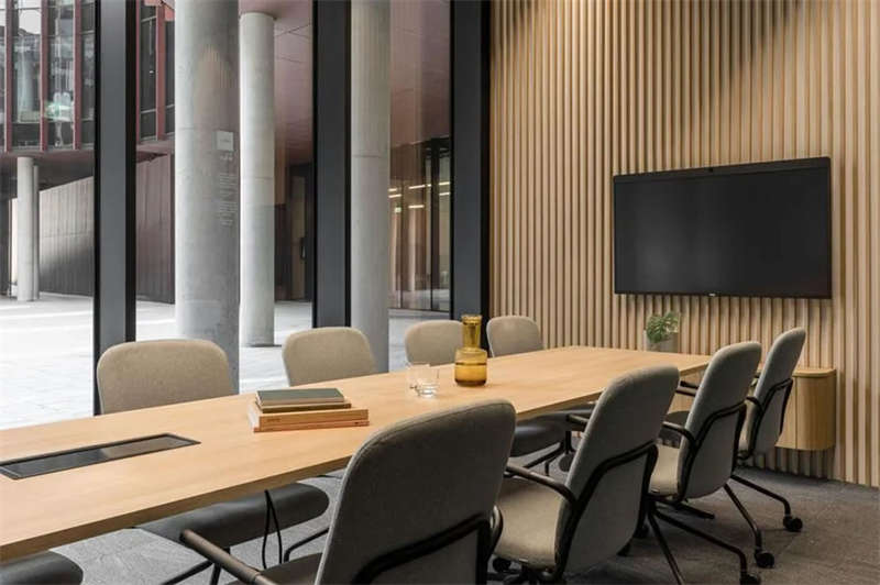 辦公室選擇了電動可調的升降辦公桌,以滿足員工個性化的需求。為了改善工作區域的聲學效果,在工作站之間和燈具上安裝了聲學板,并采用了大量的織物窗簾,從而減少了辦公室內的噪音和混響。此外,在會議室配置了頂尖的IT/AV系統,從而將辦公室工作與遠程工作緊密連接;安靜的聲學工作艙則配備了智能照明和高效通風系統。