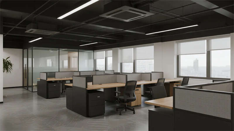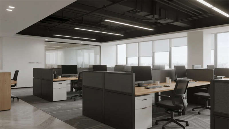 開放辦公區(qū)依托巨幅落地窗引入自然韻律,升降工位與模塊化家具賦予空間彈性;獨(dú)立辦公室通過垂直百葉調(diào)節(jié)光影私密性,暗藏式書柜燈光烘托沉穩(wěn)氣質(zhì)。核心協(xié)作區(qū)打破傳統(tǒng)封閉模式,弧形沙發(fā)與可書寫玻璃墻激發(fā)即興創(chuàng)意,而茶水間綠植墻與城市景觀吧臺,則在高效節(jié)奏中注入呼吸感。