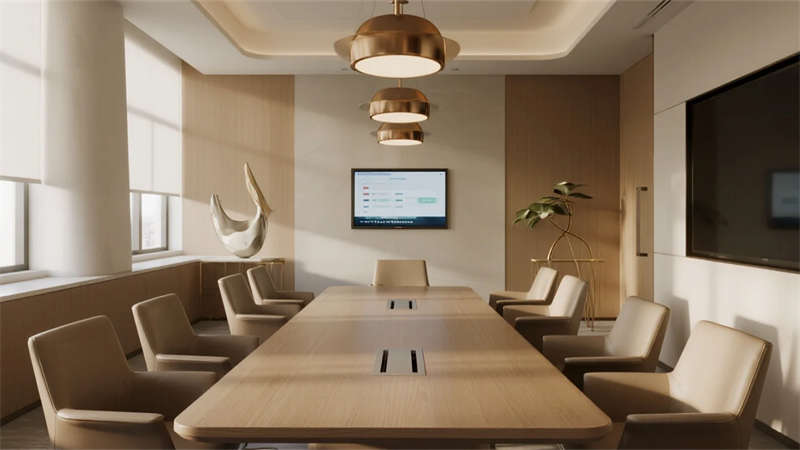 本設(shè)計(jì)以輕奢風(fēng)格為核心,打造一個(gè)優(yōu)雅而舒適的辦公環(huán)境。外觀采用現(xiàn)代建筑語言,玻璃幕墻與金屬細(xì)節(jié)相結(jié)合,彰顯高端氣質(zhì)。內(nèi)部空間注重細(xì)節(jié)與品質(zhì),接待區(qū)以大理石前臺(tái)和金屬裝飾營造歡迎氛圍,開放式辦公區(qū)布局靈活,配備簡約家具和自然光元素,提升工作效率。會(huì)議室設(shè)計(jì)專業(yè)且智能,私人辦公室融合落地窗和 luxury 裝飾,提供靜謐工作空間。員工休息區(qū)與咖啡角注重舒適性,軟裝家具和溫馨 lighting 促進(jìn)放松與交流。走廊區(qū)域通過藝術(shù)墻面和 lighting 效果增強(qiáng)空間感,整體設(shè)計(jì)融合材質(zhì)對(duì)比與柔和色調(diào),營造出精致而人性化的辦公體驗(yàn),強(qiáng)調(diào)美學(xué)與功能的平衡。