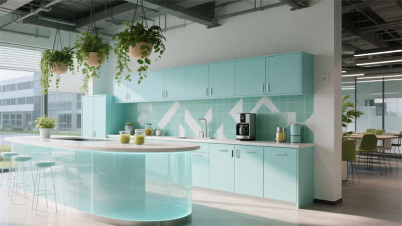 智能協(xié)作區(qū)配備環(huán)形數(shù)字屏幕與可書寫隔斷,激發(fā)團隊創(chuàng)造力;靜音艙體與獨立辦公室滿足深度工作需求。員工休憩區(qū)通過柔和的馬卡龍色調(diào)與曲線家具,營造松弛氛圍。接待廳的波紋金屬墻與全息投影臺,在溫潤木元素中點綴未來感。