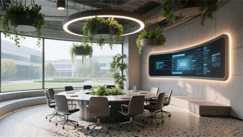空間摒棄傳統(tǒng)隔斷,運用通透玻璃與可移動裝置實現(xiàn)功能轉(zhuǎn)換,陽光透過智能窗控系統(tǒng)灑入每個角落。材質(zhì)與光影的精心編排,構(gòu)建出兼具高效協(xié)作與人文關懷的現(xiàn)代辦公生態(tài),詮釋創(chuàng)新企業(yè)的精神內(nèi)核。