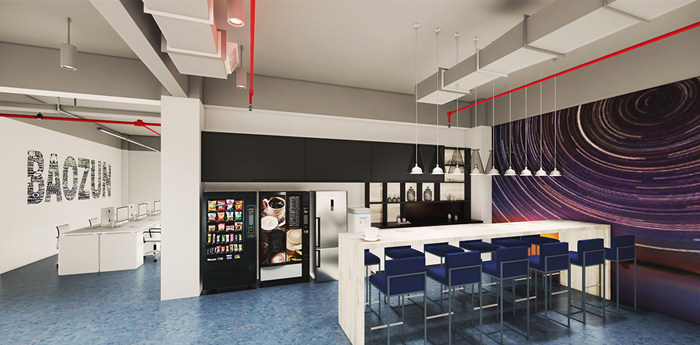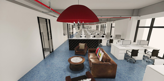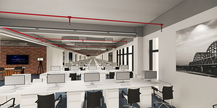 電子商務商業伙伴和領先的技術研發及解決方案公司。設計團隊根據電商的科技創新與行業桂冠特性,在設計中采用具有科技力量的LOFT風格,并將企業特性經過藝術手法運用到辦公空間設計之中,使平常的空間關系發生了變化,從而營造出具有科技、創新、活力的辦公空間氛圍。