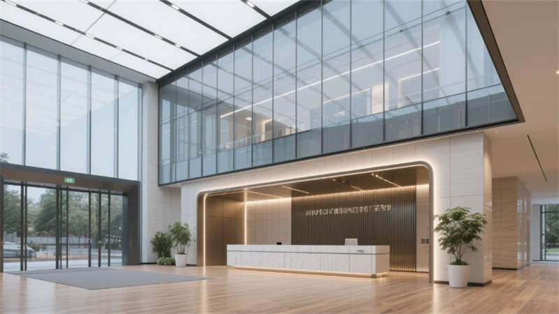 本辦公樓設計以簡約現代風格為核心,打造一個統一而流暢的空間體驗。整體強調功能性、舒適性和美學平衡,每個功能區均采用中性色調、干凈線條和自然元素,營造出寧靜和諧的環境。大堂入口以開放通透的布局迎接用戶,結合玻璃幕墻和木質細節,傳遞專業而溫馨的第一印象。開放式辦公區通過模塊化家具和充足采光,促進團隊協作與效率。會議室設計注重靈活性,透明隔斷和集成設備支持高效交流。員工休息區和餐廳咖啡吧作為社交中心,提供舒適休閑空間,增強員工福祉。經理辦公室平衡隱私與開放性,簡約家具營造專注氛圍。走廊和衛生間延續統一美學,注重清潔與引導性,確??臻g銜接自然。