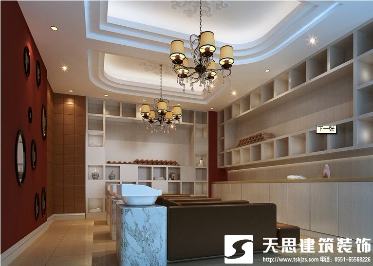 收銀臺需和整體店內設計相融合,以精、美、小為佳,背后應設計顧客寄存柜,讓顧客產生安全感,收銀臺應考慮到電腦、電視、音箱、燈光的控制設計,便于操作方便。收銀臺上應設計顧客檔案、技術資料插夾。不要忘了吸貼式員工輪牌板安置環節。