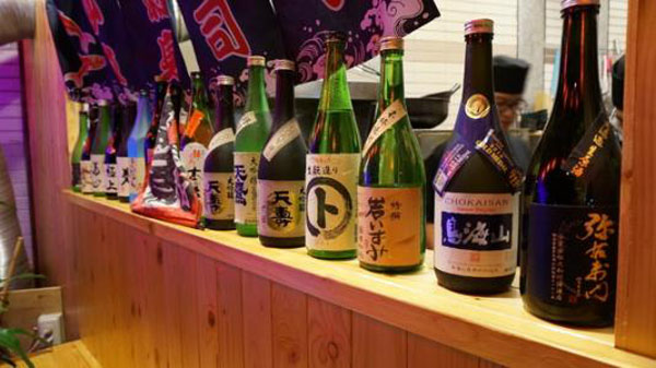 很多日本的酒瓶都是1.8L的,集中統一擺在店里,很有氣勢感。