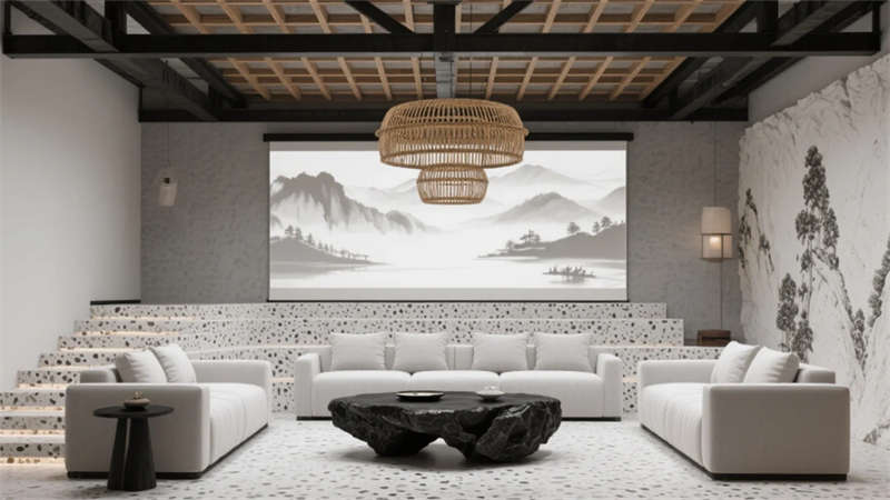 空間脈絡延續山水哲學——開放式辦公區的水墨玻璃隔斷營造朦朧畫境,創想實驗室可書寫墻面激發思維奔流。協作沙龍區的階梯布局與動態山水投影,催化靈感迸發的化學反應。靜思艙藏身綠植墻中,為深度思考保留秘境。