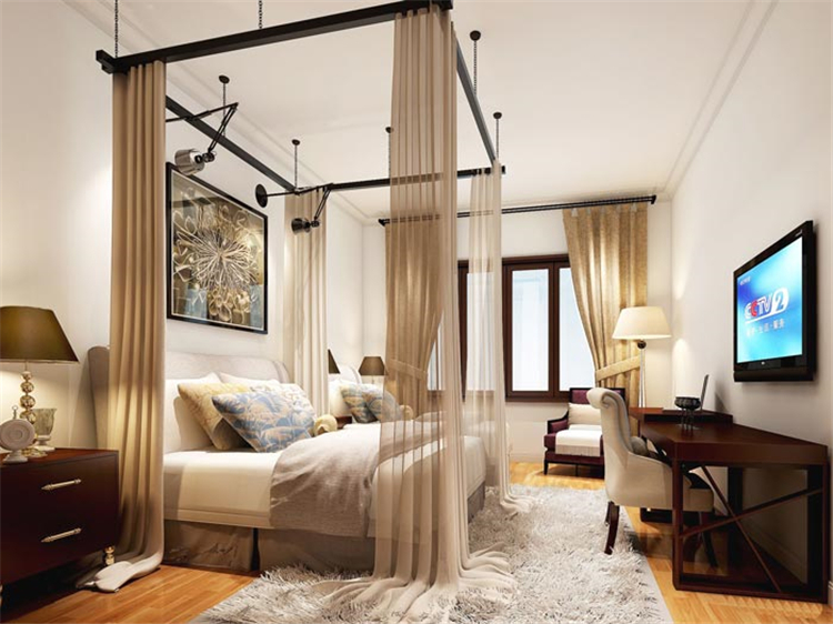 雙人間的設計:此處給人最溫柔的就是地面柔柔的地毯,在這里客戶可以赤足在屋中走動,讓大家感受到赤足而走的感受,設計師希望讓大家明白,自己有多少時間沒有好好的放縱一下了,自己有多少時間沒有為自己好好活著了,人生本身是美好的,設計師希望我們去正對他。