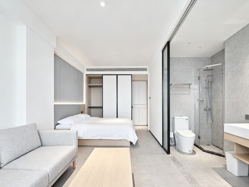 本設計以簡約風格為核心,圍繞2000平酒店的居住與功能需求,打造兼具質感與舒適的空間。整體摒棄繁雜的裝飾元素,以淺白、淺灰、淺木色為基礎色調,通過材質的質感對比與光線的柔和運用,傳遞簡約而不冰冷的氛圍,讓客人在簡潔的環境中獲得放松的居住體驗。?