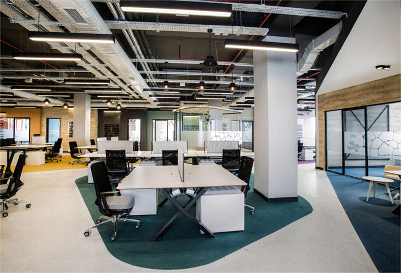 該工廠是一家獲得環保認證的工廠。通過設計所有的辦公室和社交區域,為員工提供了一個非常高效的設計,并具有環境友好型綠色辦公室的愿景。
