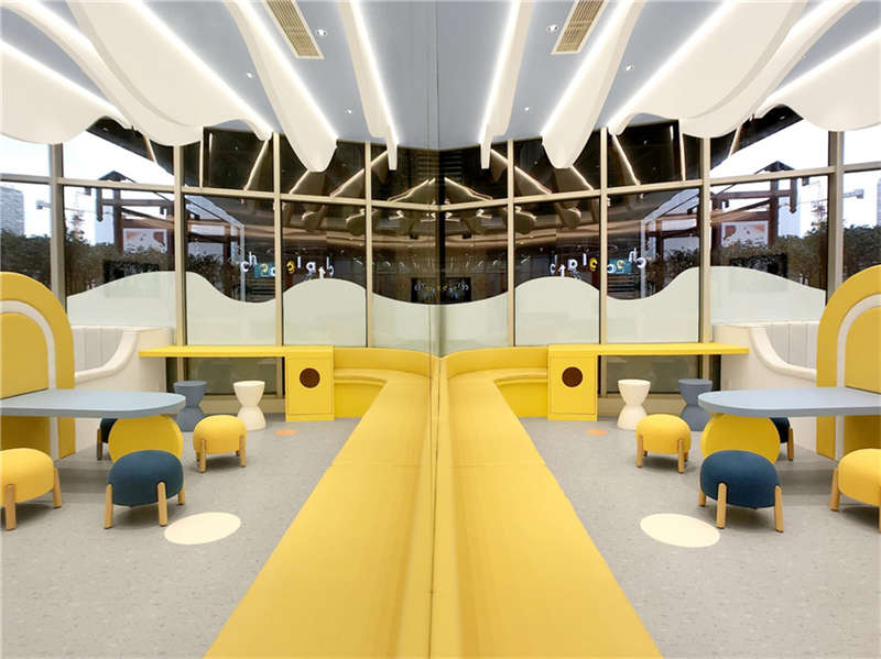 干發(fā)區(qū)上的窗口,讓孩子在停歇的片刻,一抬頭一伸手,便能感觸天空,生長不同形狀的夢。更衣室的夾角鏡子讓60°的空間折射出360°的世界!能量星球里的一切都意猶未盡,我們期待每一次的相見。