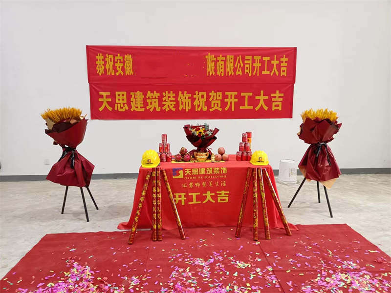 天思裝飾在此攜全體員工恭祝安徽一2000平科技廠房開工大吉!!!感謝業(yè)主對我們天思建筑裝飾的信任,我們必不負所托,保證工程的效率與質(zhì)量,將項目完美完成,交給客戶一份滿意的答卷!