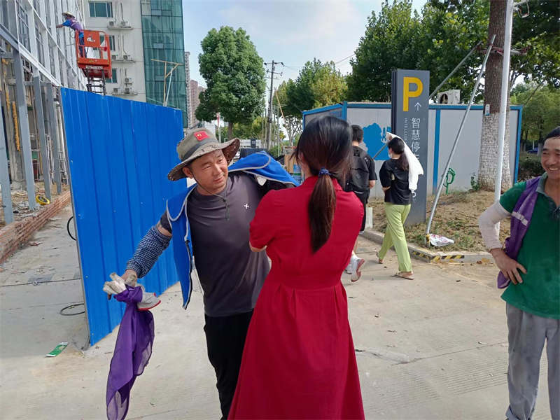 一到項(xiàng)目工地,就看見(jiàn)了一線工作者在40度酷暑的天氣下勞作,每一滴汗水都是辛苦工作的象征。胡主管將公司領(lǐng)導(dǎo)買(mǎi)的礦泉水,冰袋和安全作業(yè)馬甲都搬了下來(lái),招呼一線工作者過(guò)來(lái)喝水休息一會(huì)。在慰問(wèn)施工勞務(wù)作業(yè)人員時(shí),她強(qiáng)調(diào),要多方舉措防暑降溫,保證高溫作業(yè)條件下員工的身體健康;要科學(xué)安排作息時(shí)間,避免疲勞施工,保證安全。
