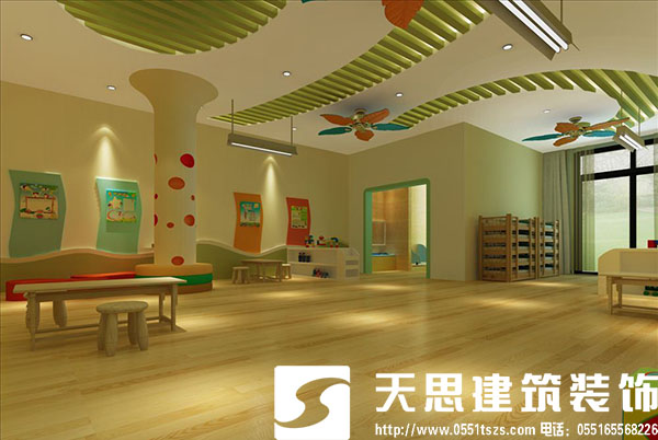 好的幼兒園裝修設(shè)計(jì)必須充分體會(huì)到孩子的需要,讓孩子們健康快樂的學(xué)習(xí)和成長(zhǎng),才是幼兒園設(shè)計(jì)成功的關(guān)鍵。要使幼兒在適合他們健康成長(zhǎng)的環(huán)境中生活。安全、衛(wèi)生是重要的條件,幼兒園環(huán)境創(chuàng)設(shè)必須服從于衛(wèi)生和安全的要求,以保證幼兒的安全成長(zhǎng)。合肥裝飾公司天思建筑裝飾公司您身邊的裝修專家,裝修詳情盡情咨詢:http://www.miqian.net/