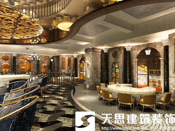 在西餐廳裝修過程中,包括走廊立向,西餐廳的墻面裝修等都是形成空間環(huán)境氣氛的重要元素,它們的造型在形式上應(yīng)比較自由,避免對稱式構(gòu)圖,對一些形式美的原則則可以突破,給人以強烈的視覺沖擊,在界面材料的運用上也可別出心裁,給人眼睛一亮之感。這就是裝修的創(chuàng)造性。