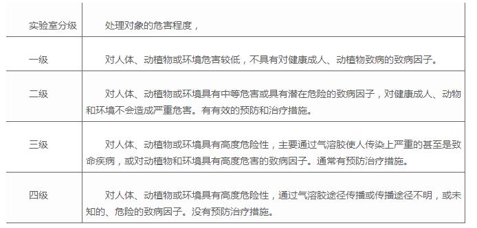 實驗室工作人員在處理病原微生物、含有病原微生物的實驗材料或寄生蟲時,為確保實驗對象不對人和動植物造成生物危害,確保周圍環境不受其污染,對實驗室和動物實驗室的設計與建造都有特別的要求.