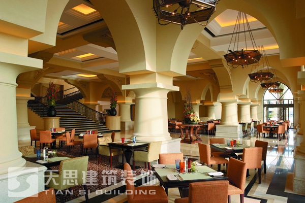 西餐廳會選擇歐式的裝修風格,在內部設施上通過選擇歐式吊頂以及獨特的墻壁,會讓人們覺得這種方式能夠體驗到另一種西式風情。尤其是經典的羅馬頂高石柱,以及內部裝飾上,燈光的暗淡給于人們一種特殊的神秘感,讓顧客在其中享受這種異域氛圍。現在大眾化普通的西餐廳裝修風格已經類似于茶餐廳的樣式,這也算是一種簡化裝修方式吧。