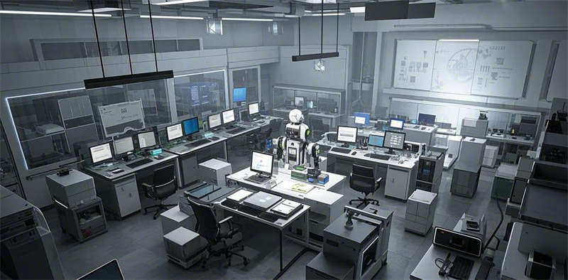 本次1000平方米機器人制作實驗室設計以高效、科技與人性化為核心,打造多功能研發與生產空間。入口與接待區現代簡約,配備企業標識和科技感裝飾,營造專業氛圍。機器人組裝區寬敞實用,工作臺和自動化設備布局合理,滿足高效生產需求。研發與設計區開放式布局,配備3D打印機和白板,激發團隊創造力。測試與調試區科技感十足,測試平臺和監控設備確保產品性能。材料存儲與物流區高效有序,自動化搬運設備提升效率。會議室與協作區設計簡潔,智能設備支持高效溝通。