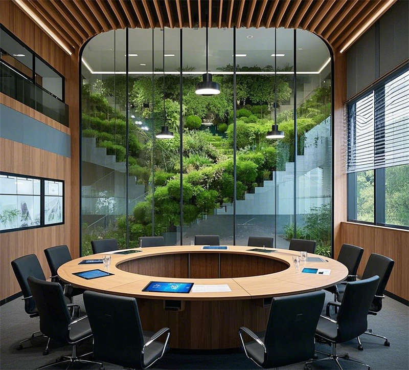 本設計充分考慮了辦公樓的不同功能區,包括大堂、開放式辦公區、會議室、休息區、經理辦公室、多功能廳、走廊和休閑露臺。每個區域有不同的設計重點,希望展示現代、科技感,同時兼顧舒適和環保,還要注意空間布局,比如開放式辦公區的協作性,會議室的隔音和多媒體設備,休息區的放松氛圍。