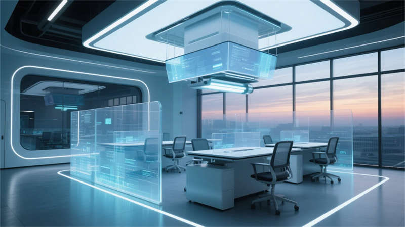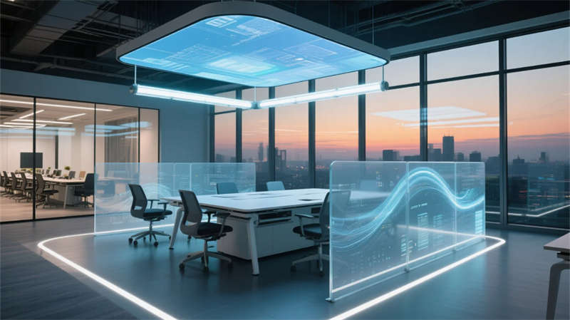 特別規劃的靜音矩陣如同散落的思維膠囊,磨砂艙體表面的呼吸光效在開放空間中劃出沉思領地。最具突破性的創客實驗室采用可變形界面系統,墻面、桌面與設備形成立體交互矩陣,配合中央全息投影臺,實現思維的可視化碰撞。健康艙內仿生生態系統與智能調光技術,在科技密度中守護人文溫度。