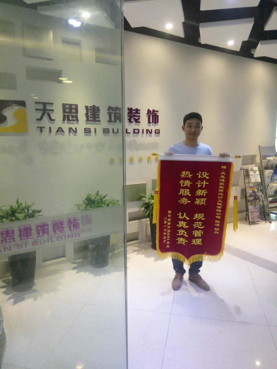 這一次的裝修讓業主倍感輕松,我們天思的工作人員也非常開心。業主送的錦旗不僅僅是一種榮譽,更是業主朋友對天思工作態度的肯定和認可,是讓我們天思向更高的目標邁進的強大動力。期待以后的我們能用更專業的質素和更好服務態度為更多的業主實現自己的家具夢想,真真正正的為業主省時、省心、省力、省錢!