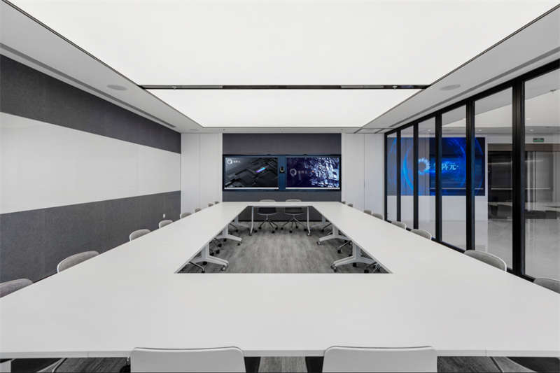 整個(gè)空間呈現(xiàn)出輕盈的姿態(tài),大面積留白給予空間呼吸感,曲線流動(dòng)的造型就像一根善于變化而纖細(xì)不驚的絲線,即將牽引出一次次關(guān)于未來的探索。