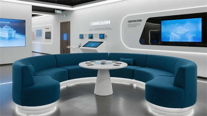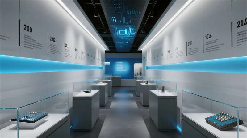 該半導體企業展廳以現代簡約風格為核心,通過流暢空間布局與高科技元素,打造沉浸式科技體驗。設計突出半導體技術的抽象表達,利用藍色與灰色調營造冷靜、專業的氛圍,同時融入玻璃、金屬材質增強通透感。入口區以懸浮雕塑引導視線,產品展示區通過簡約玻璃柜和觸屏互動,生動呈現技術精髓;技術創新墻以動態圖文展現工藝演進,歷史廊道則以線性敘事喚起行業記憶。互動區和未來展望區強調參與性,采用環形屏幕與全息投影,讓訪客直觀感受創新應用。休息區與演講區注重人性化,簡約家具結合微光紋理,提供舒適交流空間。整體設計摒棄繁復裝飾,以干凈線條和光影變化強化空間流動性,不僅傳遞半導體領域的精密與前瞻性,更通過美學融合提升教育性和觀賞性。展廳作為科技展示平臺,旨在激發探索興趣,體現企業對創新文化的重視。